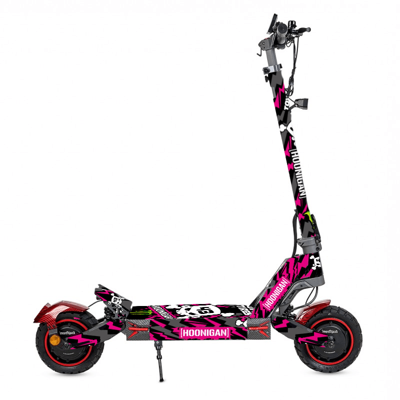 El Vinilo Hoonigan Purple para Ecoxtrem M41 es perfecto para usuarios que buscan un patinete con carácter propio, combinando estética, protección y personalidad en un solo producto.